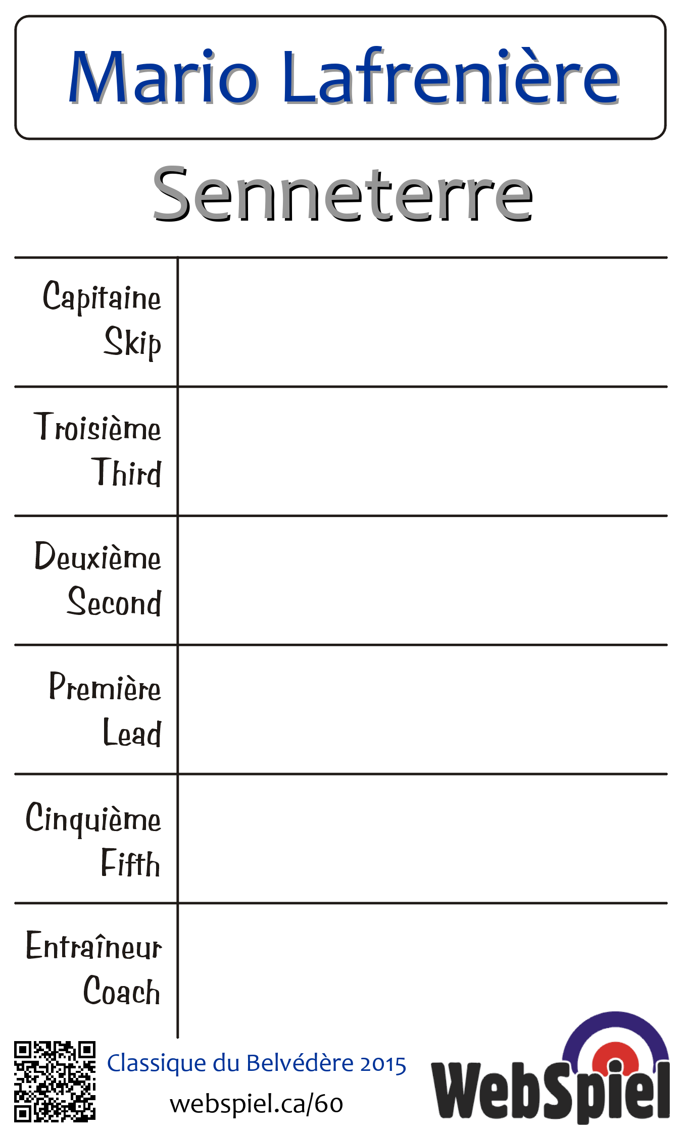 | Club | Senneterre Club de Curling de Senneterre 355 Chemin du Mont-Bell, Local 1 Senneterre, QC J0Y 2M0 CANADA T: 819-737-4362 2 glaces |