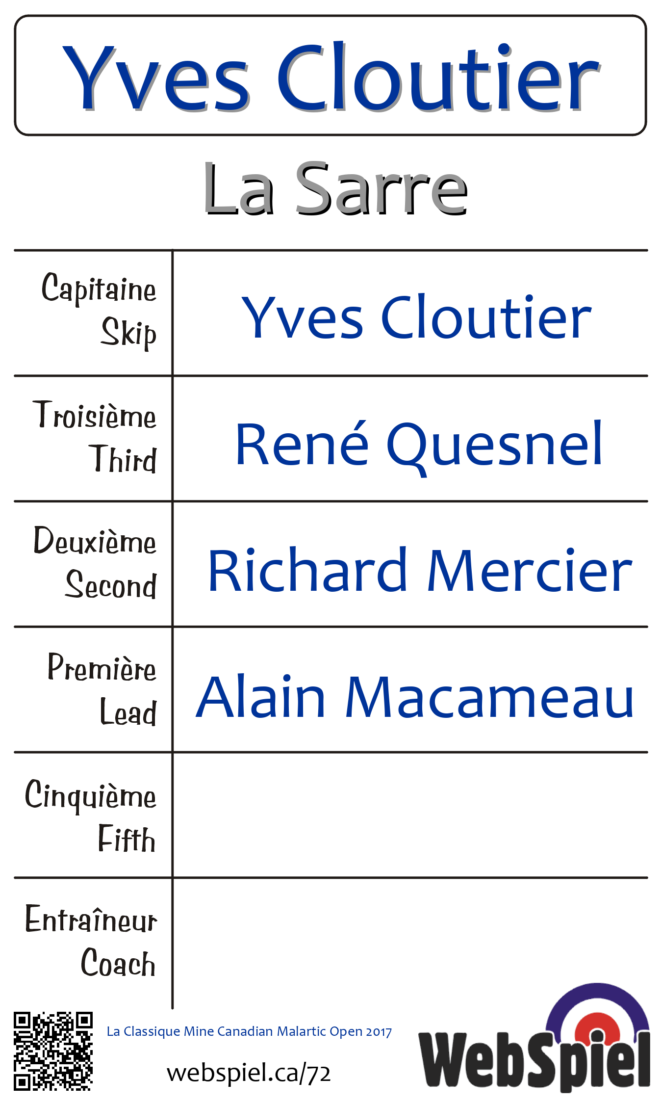 Complété. La Classique Mine Canadian Malartic Ouvert 2017 · Draw D03