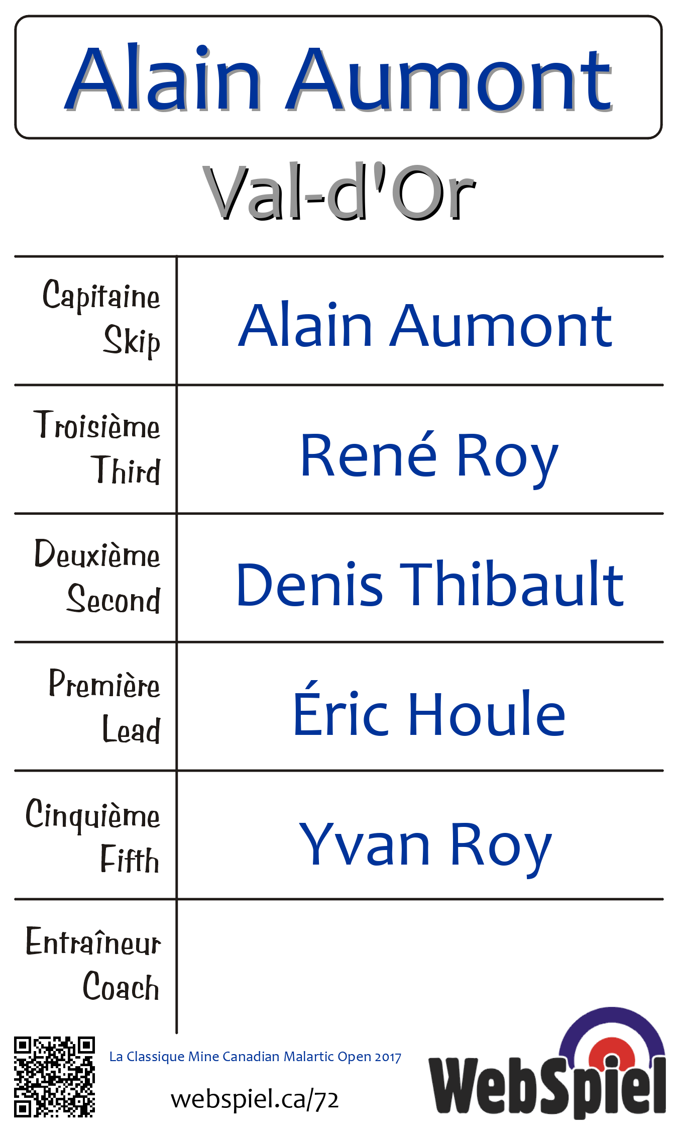 Mardi le 31 janvier 2017, à 21h00 EST Club de curling du Belvédère, Glace 3 · C, Gagnant › A32, Perdant › C08 | |||||||||