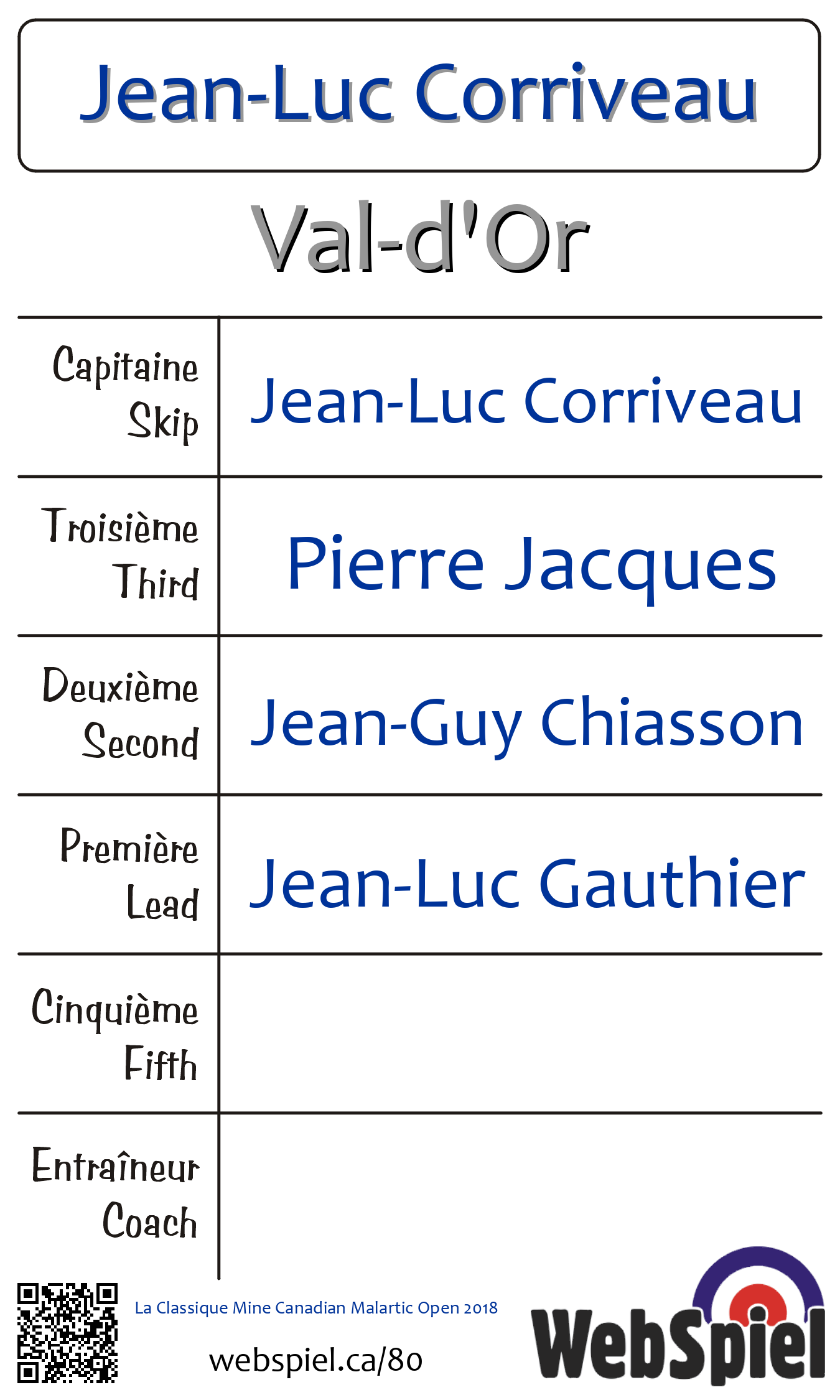 Jeudi le 1 février 2018, à 21h00 EST Club de curling du Belvédère, Glace 1 · A, Gagnant › A11, Perdant › C07 | |||||||||