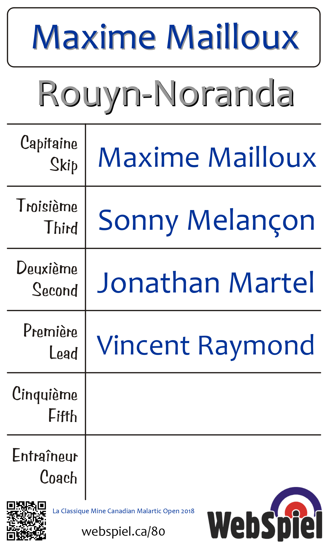 | Équipe | 15 - Maxime Mailloux |