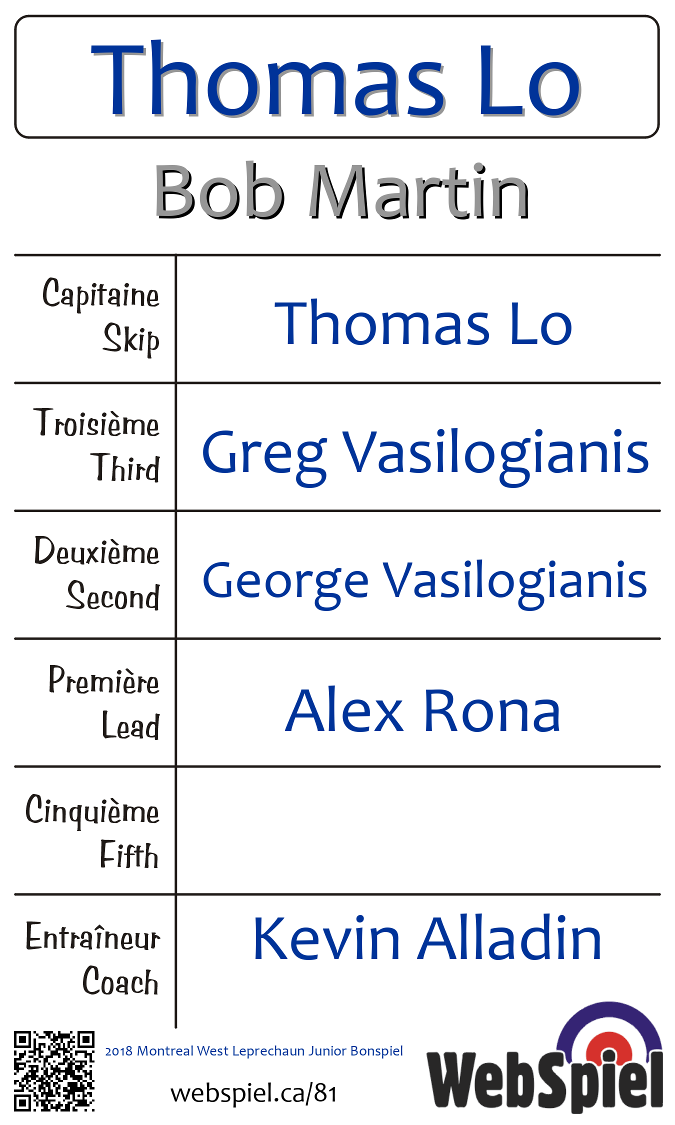 Montreal West Curling Club, Glace 72, Gagnant › F07, Perdant › F05