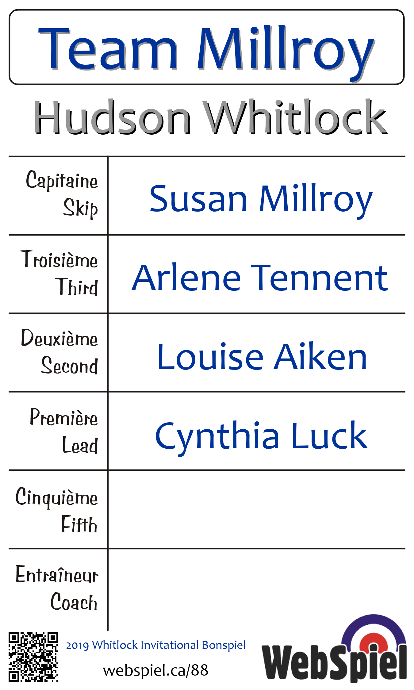 Jeudi le 10 janvier 2019, à 18h45 EST Club de curling Hudson Whitlock, Glace 2, Gagnant › A17, Perdant › C02 | |||||||||