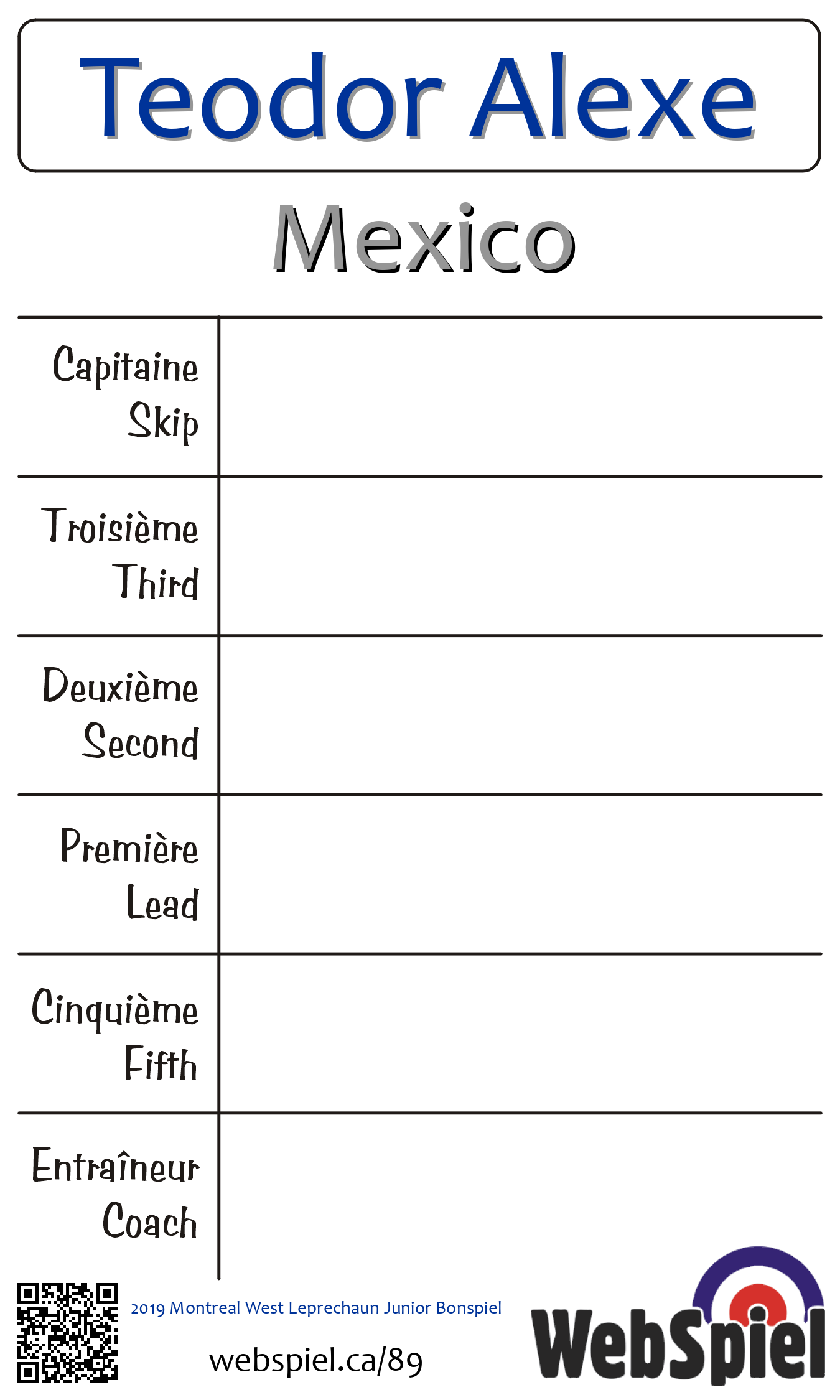 | Club | Mexico Club de curling Lachine 4105 rue Fort Rolland Lachine, QC H8T 1W1 CANADA T: 514-637-9521 F: 514-637-1463 http://www.lachinecurling.com 3 glaces |