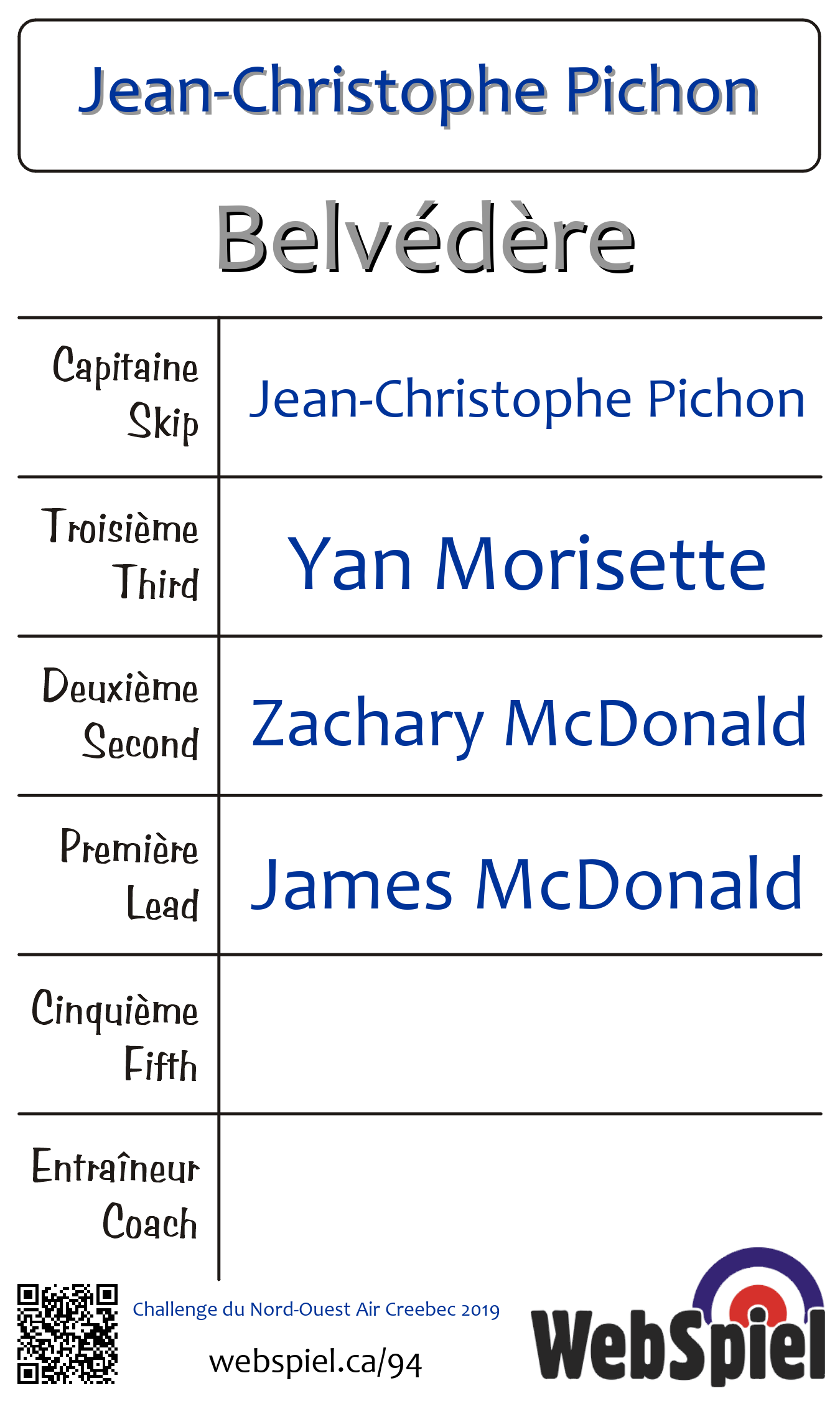 Jeudi le 31 octobre 2019, à 18h45 EDT Club de curling du Belvédère, Glace 3 · C | ||||||||||
